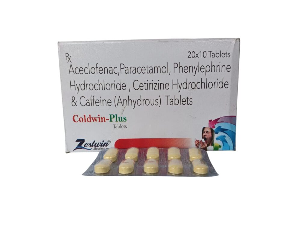 Aceclofenac, Paracetamol,Phenylephrine Hydrochloride, Cetirizine Hydrochloride, & Caffeine(Anhydrous) Tablets