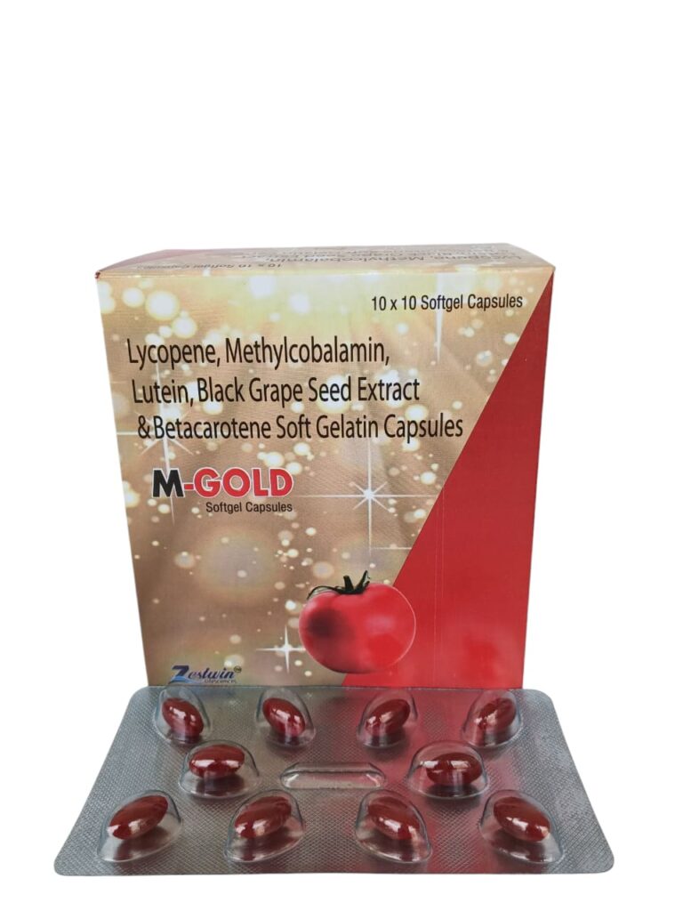 Lycopene, Cyanocobalamin, Pyridoxine, niacinamide, Zinc, copper Sulphate, Manganese Sulphate, Beta Carotene & selenium Dioxide Monohydrate Softgeletin Capsules